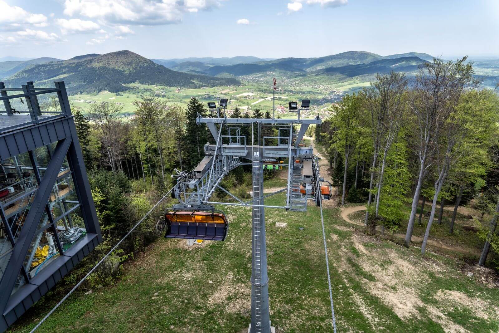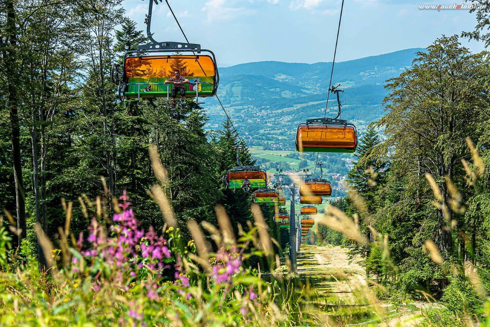 We invite you to take a ride up with the Kasina Ski & Bike Park chairlift, hike to the summit of Śnieżnica, and then visit the Scenic Glade (Polana Widokowa), located right next to the paragliders take-off point.