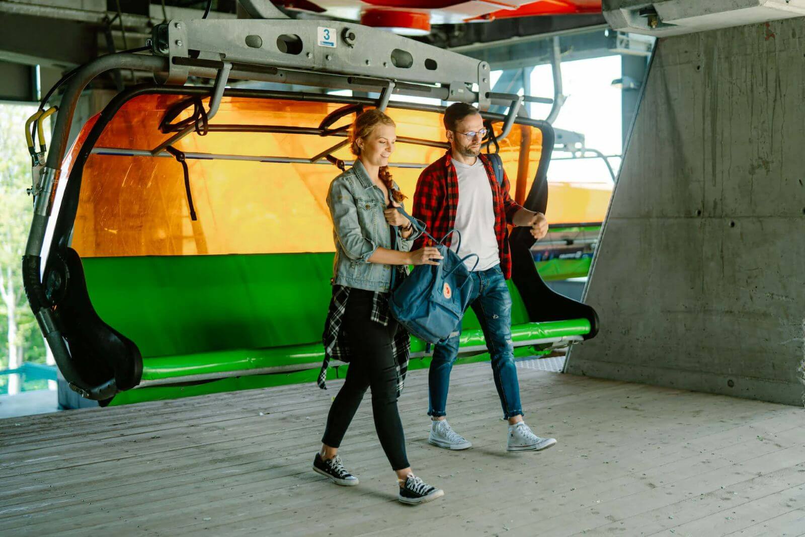 In summer, it’s fully equipped for bikers, with dedicated bike hooks for easy transport. In winter, weather shields protect you from wind and rain, making the 5-minute ride to the top both relaxing and enjoyable.